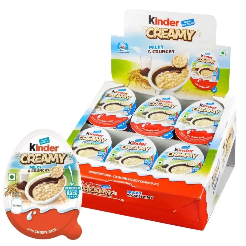 Scopri la bontà irresistibile di Kinder Creamy, la crema al latte con croccante riso soffiato, perfetta per una pausa golosa! Questa confezione da 24 snack monodose è ideale per chi ama uno spuntino pratico e gustoso, adatto a grandi e piccoli.