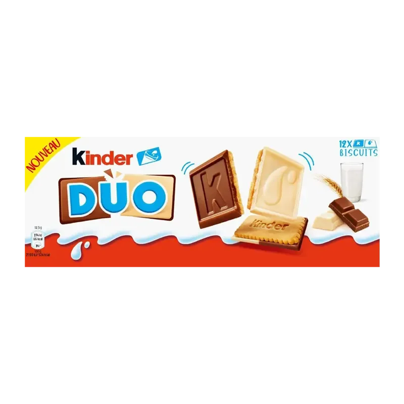 Tavoletta di biscotto croccante con sopra metà tavoletta al cioccolato al latte e metà tavoletta cioccolato bianco.