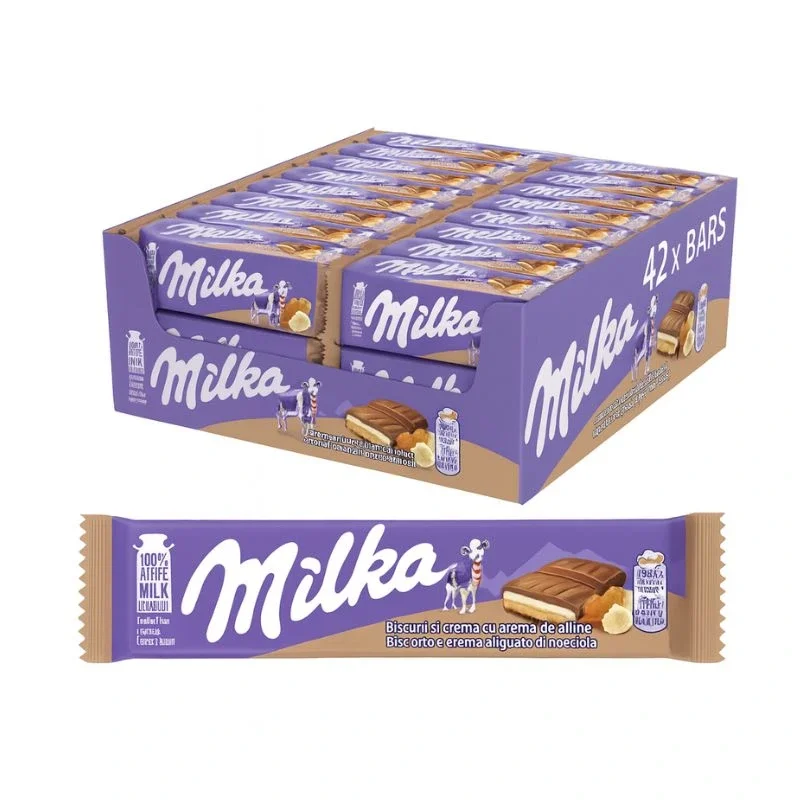 Milka Barretta Cioccolato Biscotto e Crema alla Nocciola – Confezione da 42 Pezzi ????????