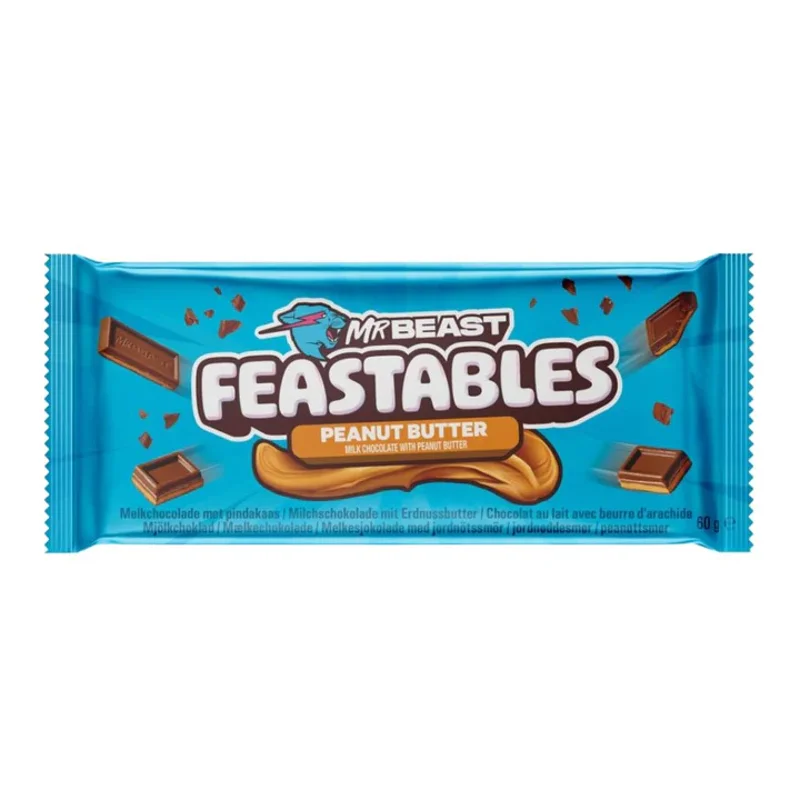 Confezione di Mr Beast Feastables Peanut Butter, un'incredibile combinazione di cioccolato al latte e burro d'arachidi che promette di conquistare ogni palato. Questo snack irresistibile è l'aggiunta perfetta per diversificare e arricchire la tua offerta di prodotti dolciari, attirando nuovi clienti alla ricerca di gusto e originalità. Non lasciartelo sfuggire, aggiungilo al carrello!