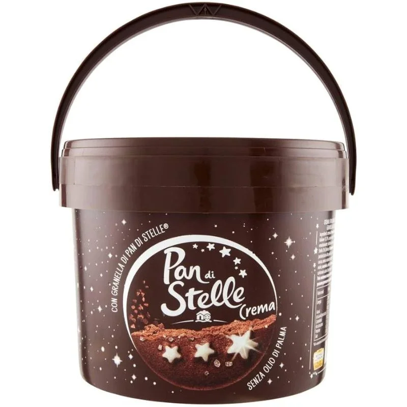 La magia dei biscotti Pan di Stelle in una crema spalmabile irresistibile, ora nel pratico formato da 3Kg perfetto per bar, pasticcerie e veri amanti del cioccolato!