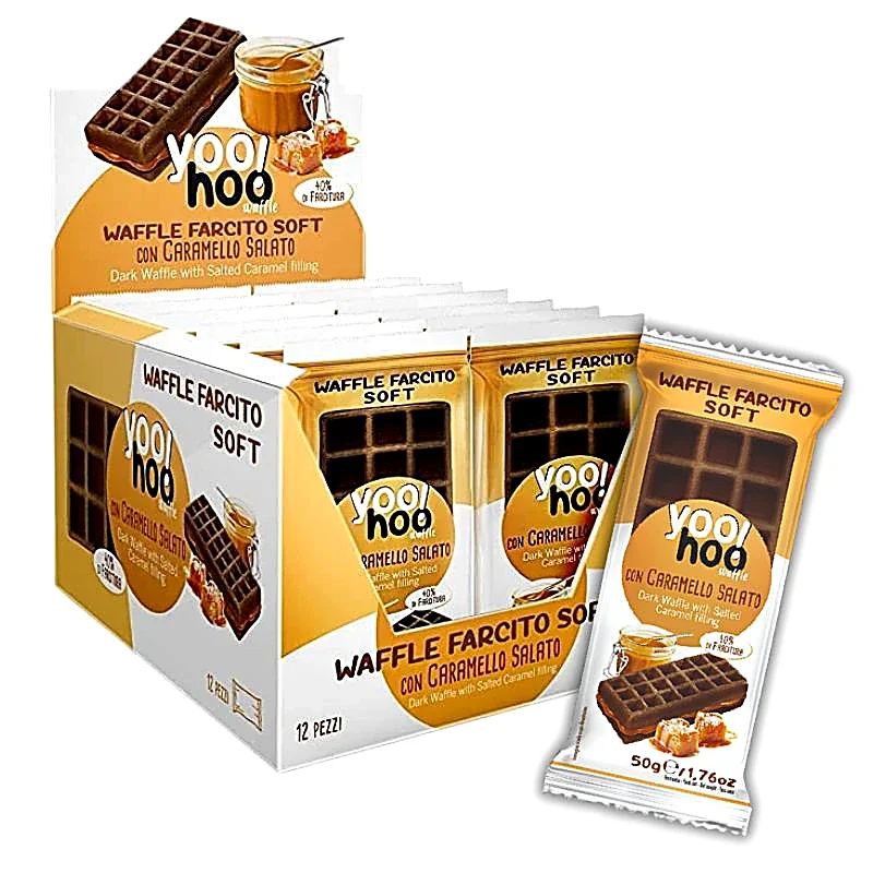 Per chi ama i contrasti di gusto, ecco lo snack perfetto: il YooHoo! Waffle farcito al caramello salato! Morbido waffle al cacao, con un cuore cremoso e goloso di caramello leggermente salato. Una vera delizia da gustare a colazione, come merenda o durante una pausa irresistibilmente dolce.