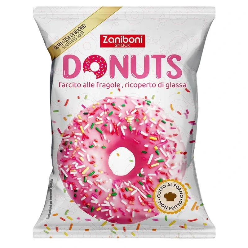 I Zaniboni Donut alla Fragola sono morbide ciambelle ricoperte da una deliziosa glassa alla fragola, dal gusto dolce e fruttato. Perfetti per iniziare la giornata con allegria o per una pausa sfiziosa, uniscono sofficità e sapore in ogni morso.